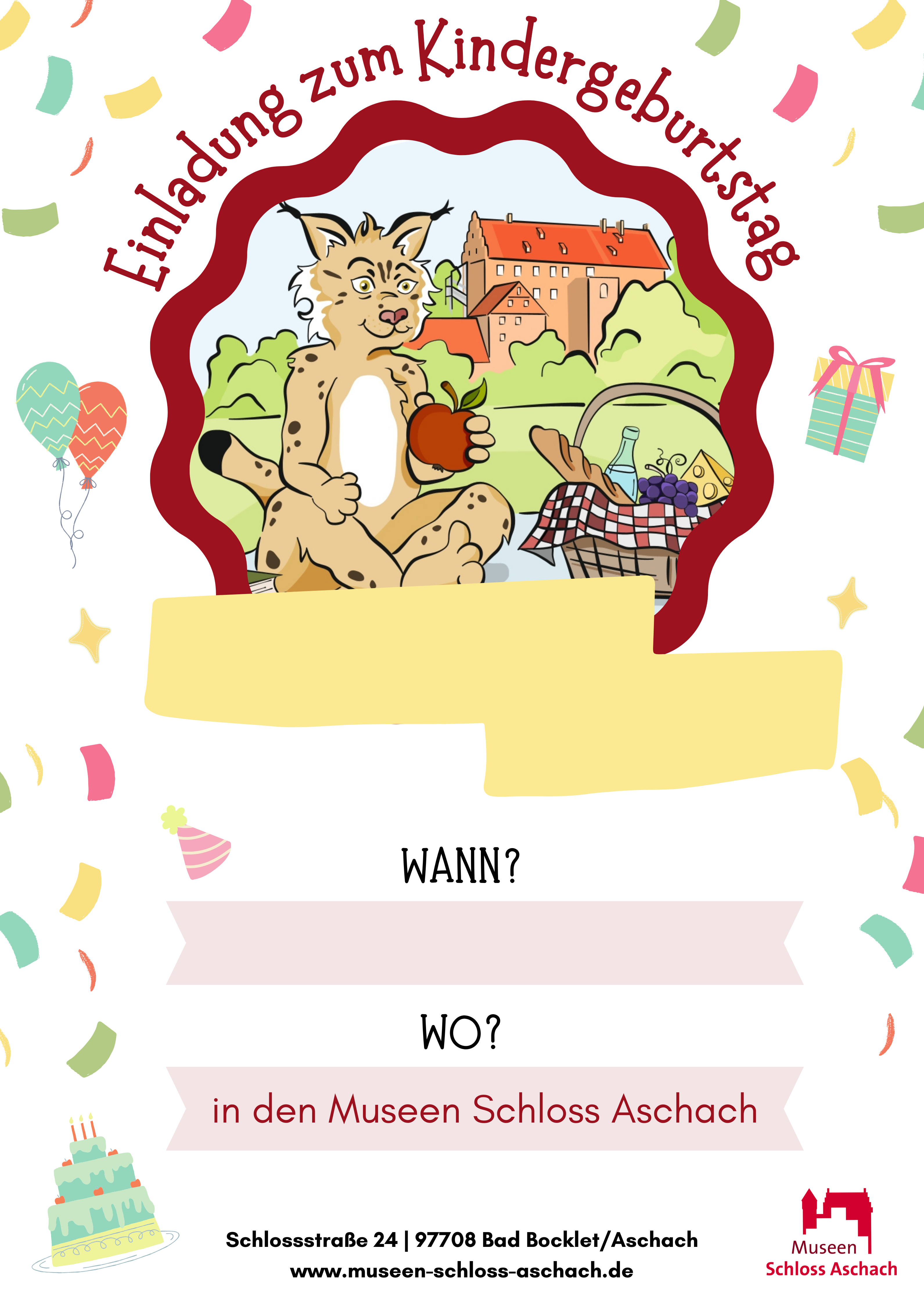 Mit der passenden Einladungskarte können die Geburtstagskinder ihre Gäste auf die Feier in den Museen Schloss Aschach einstimmen.
